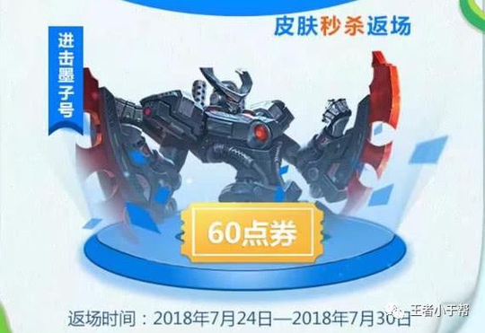 王者荣耀:进击墨子号下周二秒杀返场,永久英雄和史诗皮肤免费得
