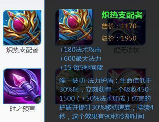 这个装备,虽然就一个作用,就是加法术攻击,但是他的被动效果可是非常强大的(官方写成主动了,哈哈),一般在后期法师的法术攻击至少有1000点,那么这个被动最少也可以提高350点法术攻击,加上本身的240点法术攻击,可以说有了它之后,法师的伤害就会高很多。
