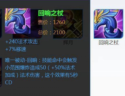 这个装备比较便宜,能增加法术攻击和移速,关键这个回响的被动可以让的很多单体伤害的技能都会造成范围爆炸。在打团的时候就会强很多了,特别是面对那些挤在一起的敌人。