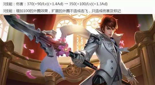赵云增强:大招伤害小幅降低,伤害范围增大100,增大范围不会击飞目标;