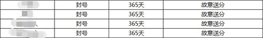 另外是大家更讨厌的送分,这个就严重影响玩家体验,处罚方式也是封号,但是 封 号的时长会更长。很多都被封1年 ,也有部分是被封90天和30天。