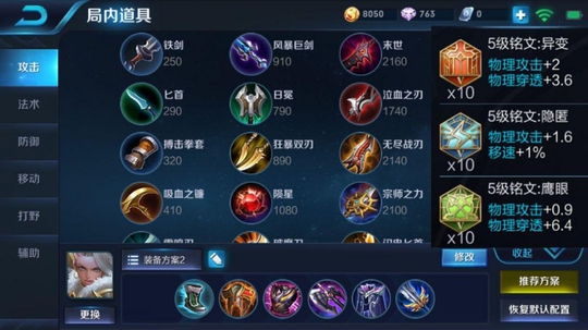 虽然锤姐也是很需要输出,但是前期笔者建议最好出一点防御装备,像火甲和暴烈之甲就是很好的选择,前者不仅能快速清理兵线,还有高额防御,后者则是越打越强,之后就来个黑切,冷却缩减也是有了,后期补上魔女和破军,这样虽然不能跟坦克相比,但是生存绝对没有问题,后期闪现大进团绝对没人能秒杀!铭文方面笔者推荐异变+隐匿+鹰眼!