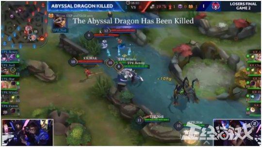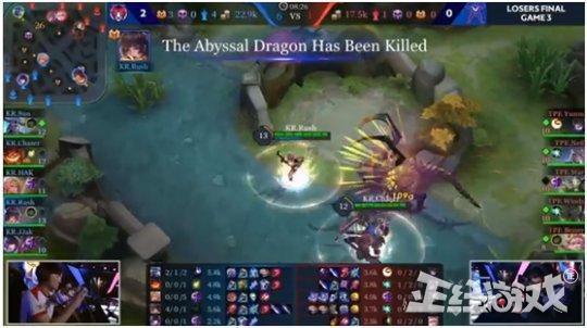 4分钟韩国队抢下魔龙,上路“关照”yuzon后拿下古龙又迅速在上路击杀了yuzon。