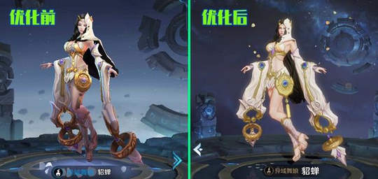 异域舞娘除了优化后有点朦胧的感觉之外,其他没找到比之前特别明显的优化。