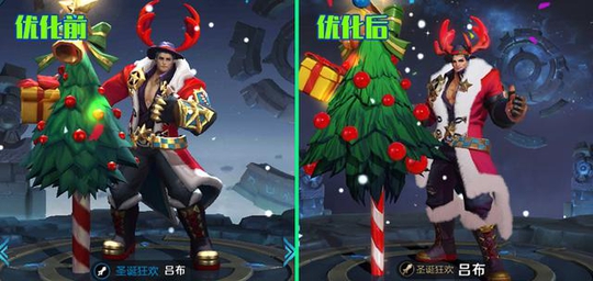 本来吕布的这款圣诞皮肤就够丑了,然而优化后比之前更丑,这脸到底是什么鬼。
