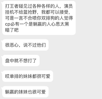 而妹子最近的游戏总是会碰到各种各样的队友,尤其是见到他们就开喷双排狗,cp必有一个是躺的人。
