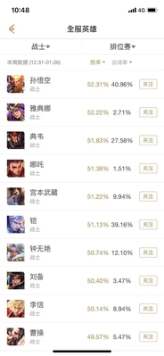 以上就是这周的英雄胜率榜内容,上分英雄还是推荐法师王昭君,辅助蔡文姬等操作难度低,容错率高的英雄,大家 快去上 分吧~