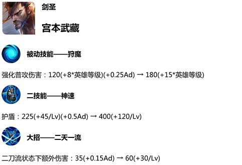 宫本武藏终于迎来了加强,这次不但加强了护盾,还加强了大招状态下的额外伤害,本身机制就非常优秀的宫本,这次估计是要崛起了。