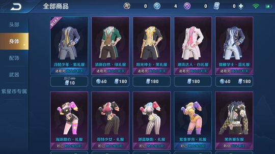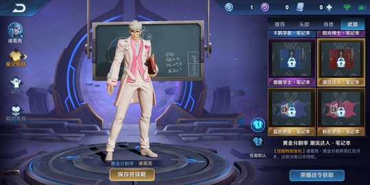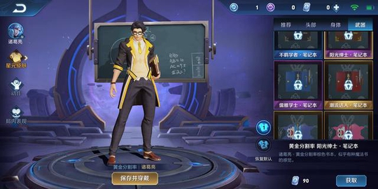 这次诸葛亮的星元皮肤,黄金分割率总共上架有3个头部单品、5个身体单品、6个武器单品,单品价位在10点券(限时)~300点券不等。官方也主打两个星元套装:潮流达人、阳光绅士。