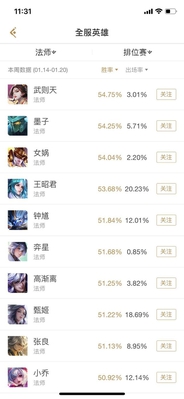 王者荣耀一周胜率榜:法师射手集体变态,玄策霸榜策划表示要削