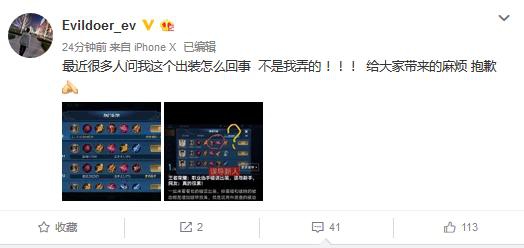 随后,Evildoer也发微博表示冤枉,声明这个出装自己并不知情,并表示自己作为职业选手当然会知道破甲不能叠加。给大家带来麻烦,很抱歉。