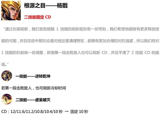 杨戬算是目前版本中比较弱的战士了,这次改动1技能比以前更容易刷新,2技能也固定cd到10秒,这都让杨戬前期的作战能力比以前要高很多。