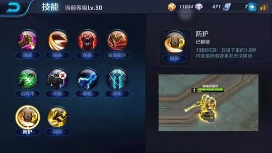 第二个技能叫做防护,这个技能的用处就和现在的金身类似,所以说老版本中所有人都可以有金身,可能也是因为后面有了辉月,这就和防护技能过于冲突了,所以也被删除了。