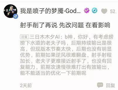 射手的强势也是玩家们有目共睹的,前期伤害就很爆炸,后期更是无人针对的情况下分分钟点死对方所有人。而b神也说了将会对射手进行削弱,削了之后在看影响。