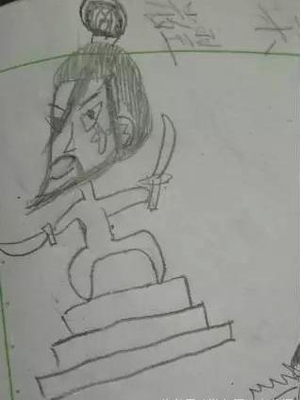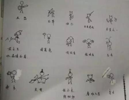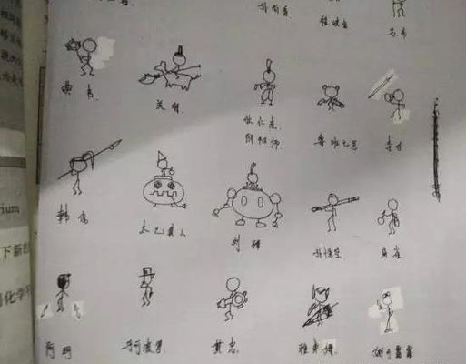这绝对是失传已久的少林寺十八铜人!每个人打出一套独门武功。而且这画还是夹在书里,肯定是上课时候偷偷画的。