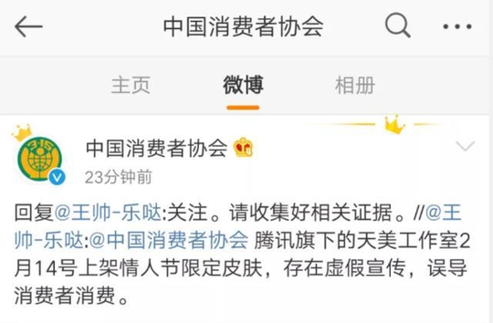 也因为这个让玩家认为官方误导玩家消费,明明介绍的全部都有,而在买了之后却只有皮肤。随后有玩家把这件事情投诉到了消协,并且消协也给予了回复,表示已经关注这件事。