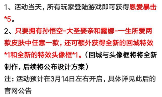 不过,好在之前的时候,王者荣耀官方也表示了将会在3月14日白色情人节的时候给予大家补偿。购买过皮肤的玩家可以获得一个全新的回城特效和头像框,也算是比较诚意了。