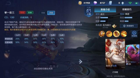 老夫子这个英雄是全英雄中减伤最多的一个,这也是他能成为单挑王的关键因素。老夫子的2技能最高可以减伤70%,他的大招在对敌人释放之后,被捆住的这个敌人造成的伤害降低20%,也就是说老夫子在和某个英雄单挑的时候最高可以减伤90%。