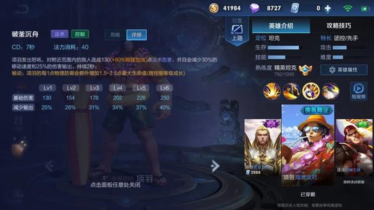 项羽的被动在血量低于30%的时候,自身就会减伤40%,然后他的2技能满级之后,命中敌人也能造成40%的减伤,也就是项羽如果2技能配合自己的被动就可以减伤80%。这可是非常恐怖的,因此很多玩家会发现有时候项羽残血却怎么也打不死。