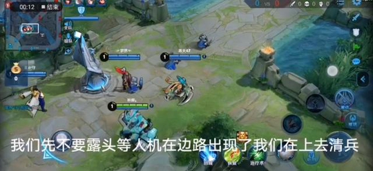 下面这一点也很关键,那就是开打之后己方先不要露头,等上下两路兵线碰到之后,人机的英雄已经开始清兵线了,这时候己方在抱团开始速推。这样的用意就是,人机的英雄开始清兵了,就可能不会来支援中路,只会推他们的上路。