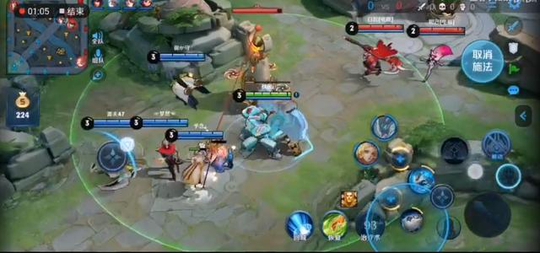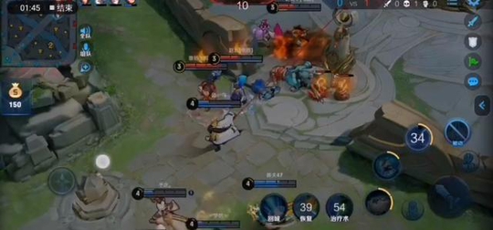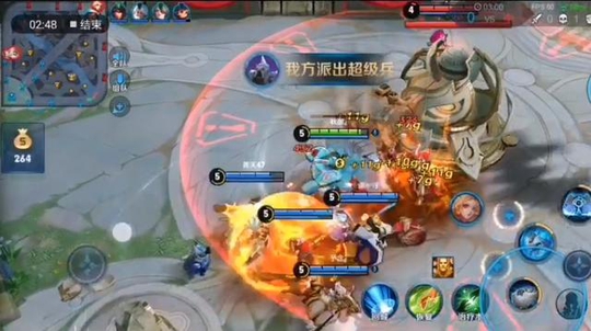这里一波推倒了高地被对方团灭了,随后复活等人在抱团,依旧是不要急着碰兵线,我们会发现人机又有人跑到其他路了,这时候在抱团依靠人数优势强行推塔,一波就能带走电脑。