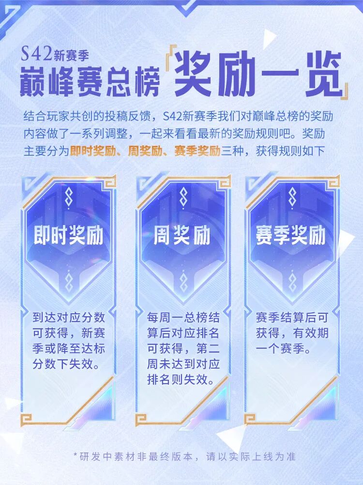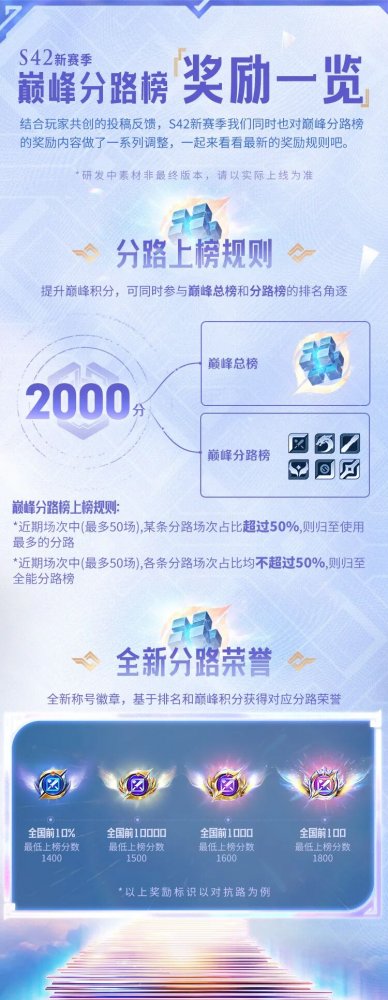 S42赛季即将到来,结合大家的共创讨论,本次对巅峰赛【总榜】与【分路榜】的奖励内容与规则也相应进行了调整,让巅峰赛的荣誉更具辨识度和纪念意义。
