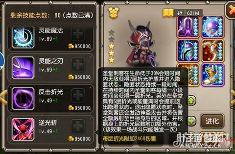 1、 优化后的折光,可以让圣堂免疫控制同时抵挡伤害,一层8820伤害,(十层的话那就是惊人的肉了)让圣堂可以开出 2、 神化技能:这么长的一段文字,要读好久才理解完。反正也是给圣一个护盾,保护其在残血时不会挂,让其顺利开出大。 三、符石 鉴于圣堂的短板就是蓄能慢,为此还是打造了回能和减能耗的属性,另外一项选了加敏捷,加强暴击。另一种说法是选减魔抗的属性,但个人认为圣堂的魔抗本身就低的可怜,再加强也强不到哪去,为此还是弥补最欠缺的能量方面为佳。 四、实战 根据圣堂现今版本的特性,选用了一个进攻端的阵型。具体组合:混沌 剑圣 埃及奥 圣堂 火枪,利用了刺客系的埃及奥,刀剑系的剑圣 ,加上火枪打断,混沌的干扰和保护,为圣堂赢得时间和提供保护。 实战1: