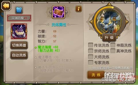 深渊恶魔的洗炼偏向输出,而且改版后输出能力大大提升,建议双洗。 【竞技场篇】 深渊恶魔如今在进攻端和防守端都有不错的表现那么他的亮点在哪? 深渊恶魔的崛起不仅仅是因为改版后技能的强化,而且由于物理系成员的崛起使深渊恶魔这个物理克星迎来了出场的机会。 总结:深渊恶魔在改版后输出能力大大增加,由于竞技场物理英雄的频繁出没让他有了用武之地,当然没觉醒的深渊恶魔仍然好用。但是深渊恶魔在面对法系爆发流时仍旧疲软,所以在组队中增加切入英雄是个不错的选择。深渊恶魔在当前版本中非常实用,所以值得一练。 [编辑:叶子猪小秘书]