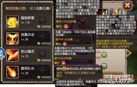 大招以自身的血量来燃烧对方,出了名的七伤拳,伤敌1000 自损800 二技能:空血后化为一个蛋,可以承受一定次数的伤害,伤害次数过多则死亡,不死则重生并可以震晕边上的对手 三技能:没啥特色 四技能:提升自身12秒伤害 五技能:光环效果,提升敢死队330点智力 皮肤技能:大招血量减少消耗20% 总体评价凤凰的技能:如神化中一样,凤凰可以一次次的重生,但给对手巨大伤害时自身也会损失大量血量,直至清零,重生后血量为16500 杀敌1000,自损800,加上技能皮肤,杀敌1000,自损640 实战 看了凤凰的技能,第一反应肯定是要组一个火卡队,要不白瞎了这么多的火元素。 由于老坑自己暂时还没有火猫,所以去借了工会小伙伴的号,大家来看下火卡队的实战吧