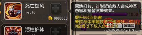 这个小技能是伐木机飞进人群之后原地打转的那个技能,为神圣伤害。伤害不算高然而有短暂晕眩的效果。毒狗和一姐都为中排,短暂晕眩能打断一次对方的攻击抬手,毒狗这个英雄就是要累积放技能才能有最后的爆发时段,而一姐少一次普攻就是少一次大输出,不停地减速和打断对于毒狗一姐的体系来说,是很致命的。 3.觉醒技能活性护体