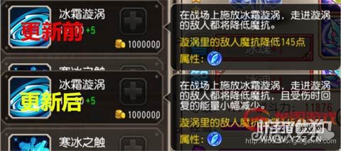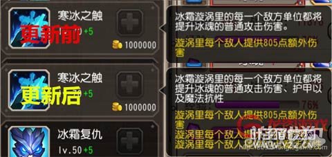 增加了减少冰霜漩涡中敌人的受伤回能,当然这个数值看不出来。 寒冰之触新增效果:根据受到寒冰漩涡影响的敌人数量提高自己的护甲与魔法抗性。