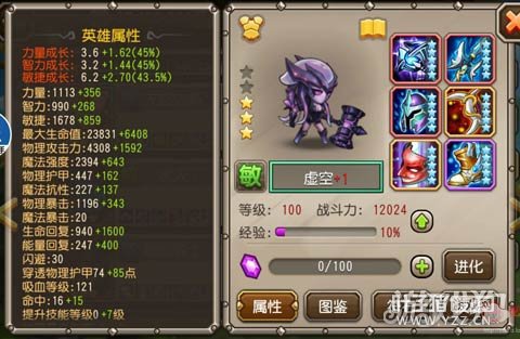如图:第3、6图,虚空基本就是无所作为就死了,主要是被舞娘和大屁股控制住,然后很快就挂了。 二、属性 上述战果,究其根源当然与3星98虚空的属性以及技能有莫大的关联,下面就一一道来。