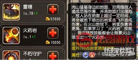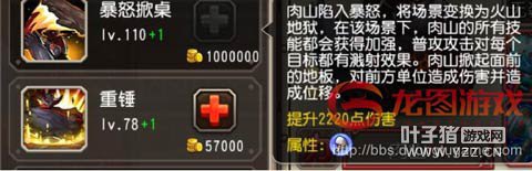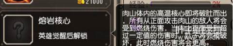 小技能重锤,肉山前后砸地三次,被砸过的地面一段时间后喷出岩浆击飞敌人并造成伤害
