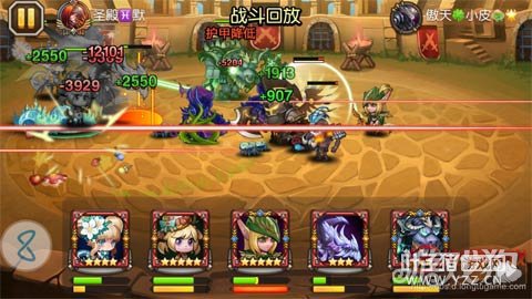 看上图,在实战中我选择白牛4后排阵容,小鹿的站位位于后排居中,当她受到第一个25%伤害,也就是生命在3/4左右时掉落第一个甜品,可以看到后排站位的另外3个队友都回复了2550生命,而前排的白牛则没有回血,说明这个范围并不算大,大约只能给小鹿同排站位的友军回复生命。