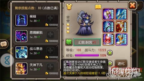 作为中排英雄,PA赖以生存的从来就不是其属性,哪怕是她在JJC中呼风唤雨的90级橙0时代,她也一样会被火女大招满血秒杀。单从数据来看,三星PA属性成长低,面板上所有的攻击、防御属性均很低。这也注定了PA不是一个好的防守英雄,或者说防守端特别吃队友,若是被针对则容易死于不明AOE。 (2)技能分析 既然PA不靠属性,那么她能拥有现在的地位必然是靠技能,传统的5个技能相信大家都很熟悉我就不再多说,基本是集高闪避、高回能、高爆发、高攻速于一身,是个典型的刺客类英雄。那么主要来看她的二觉技能”天神下凡“: