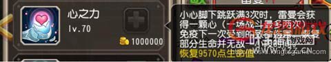 小技能心之力,配合小心脚下的技能,三连跳满时雷曼能够获得一颗心,能够抵御致死伤害并无敌一小段时间。