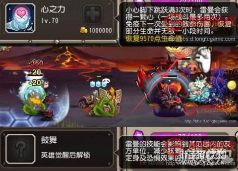 心之力(普通):跳跃三次得到一颗心,这颗心可以恢复9500的血量并且可以无敌。虽然看着技能不错,但是出这颗心还是比较难的,跳跃的次数控制。