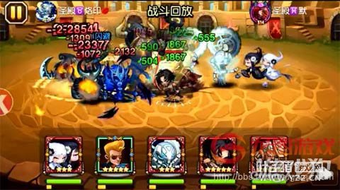 如上图所示,开场敌方全体被加上降低攻击光环。