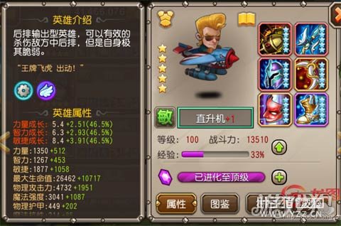 上月版本更新中加入二觉大家庭的平民英雄迎来了广泛关注,毕竟在之前版本中弱势的机械系带头大哥直升机经过了上月签到的皮肤增强以及二觉增强后能否带领机械系兄弟重回巅峰也是玩家们重点关心的问题。原本的一觉飞机现在拥有了二觉技能+皮肤技能的双重技能提升,以及符石带来的属性提升,其实力究竟如何?下面就来一探究竟。本篇是技能测试篇。 英雄分析 (1)属性分析