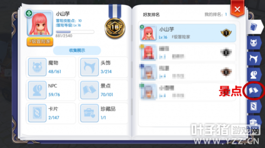 转载自百度贴吧-作者微雨语梨白 其实RO不仅仅是一个打怪升级的游戏,不管你是多少级,都可以走遍整个世界地图,去到任何想去的地方。所以如果你累了也可以静下来走走看看,有一个小小的相机就能将米德加尔特的美景收入自己的相册中。这种听着音乐游山玩水的感觉也是很不错的! 小编今天为大家分享附上冒险手册经典大全: 以下内容转载自玩家观点,并不代表媒体立场。 写在前篇的话:游戏设有保护机制,39级及其以下是不会被怪物攻击(个别少数除外)因此卤煮在39级的大道上毅然决然放弃了二转的康庄大道,走遍了目前所有地图,拍遍了所有能够拍摄的照片,毕竟一些高级怪密集地区40以后难以拍摄。 那这之前先普及下一些基本知识:1、首先先要找到自己的景点相册在哪里,更多-冒险手册-景点 2、照片地点获取方式(1)激活新地图,点艾利尔对话激活当前地图上所有的景点、魔物、传送点、npc、头饰、卡片。也就是冒险手册上显示的几项(灰色)。 (2)地图上有显示金色照相机标识,对话NPC做任务或对话激活(有些需要相应的等级才会出现任务,因此39级的卤煮需要慢慢爬)(3)隐藏景点:景点册上显示名字,游戏中没有相关任务及相关标记。 3、如何拍照更多-相机 画面滑动动左下可以在拍摄界面移动人物,滑动右下可以调节视觉,中间小白框内滑动可以调整人物面向。 画面中间有个相机标志,显示绿色说明拍摄的角度可以获取成功,红色静止表示获取不成功,需要调整角度。 另外左下笑脸可以发送表情,卤煮都是到此一游的站立,观众们见谅!右上小齿轮可以调节显示魔物、显示自己和队友等等。 右上循环箭头是第一视觉是第三视觉的兑换,有时候拍不到照片的时候可以试试。 4、冒险者技能地点冒险者公会(普隆德拉最北)和BASE、JOB一样,冒险者也有技能,而且有些还不错,这里只说对于景点获取相关的几个技能。 稍微提下幽灵相机,有些怪例如幽灵玻璃,白幽灵等是不会显示出实物的,要打到他们必须用幽灵相机给它们照出来,当然它们一旦被照出就会来攻击你。 5、地图目前游戏开放区域只有普隆德拉、吉芬、梦罗克、斐扬4大区域 那么我们就一个个区域开始: 普隆德拉区域包括:南门、下水道1F2F、西门、迷藏森林(北森)、伊斯鲁德岛(JS岛)、沉没之船、幽灵船、柏伊兰岚(海底洞窟、神殿)1、普隆德拉-南门 2、普隆德拉 大家拍的时候也可以把自己屏蔽的,风景效果还是很不错的!但是卤煮还是喜欢这种自己走遍千山万水的感觉,所以虽然进去影响画面还是坚持要拍进去。 3、下水道1F 4、西门 5、迷藏森林(北森) 6、依斯鲁德岛(JS岛) 7、沉没之船 8、幽灵船 9、柏伊亚岚岛、海底洞穴(1F) 10、海底神殿(海底2F)海2有个伪的碑,神一般的视角,谜一般的拍摄,建议学完广角自由或着坐上鲸鱼拍摄 吉芬区域 包括:吉芬、妙勒尼山脉、兽人村落、吉芬塔地下、兽人地下洞窟、哥布灵森林、克特森林1、吉芬 哥布灵森林 秒勒尼山脉 吉芬塔地下 兽人地下洞窟 克特森林 梦罗克 包括:蚂蚁密穴、梦罗克、金字塔1F 2F、苏克拉特沙漠1、蚂蚁密穴 苏克拉特沙漠 金字塔2F 斐扬包括:斐扬、斐扬树林、斐扬南部区域、斐扬洞窟1F、2F1、南部区域 斐扬树林 斐扬 斐扬洞窟1F 斐扬洞窟2F 开始补充40级之后的景点 吉芬-梦境摩天轮触发条件:哥布灵森林金色相机标志任务,交30个雪勒结晶(其实这个任务到吉芬就有了只是当时30多级打不起白蚁) 梦罗克-梦洛克宫殿触发地点:妙勒尼山脉观察者灯塔处40级主线任务 妙勒尼大瀑布、飞空艇残骸触发条件:妙勒尼40主线4个元素任务完成后 梦罗克-古代守墓人遗迹触发地点:金字塔门口小孩艾德文娜国家地理杂志直接给金色相机,因为卤煮49级时突然发现,目测应该是46~49左右等级自动出。 梦罗克-祭祀祭坛触发条件:等级触发,今天再送黑狐的过程中发现竟然能够接景点任务,地点在左上角进2楼门口,建议这一地图全程靠飞 斐扬-爷爷的家、绵羊帽子村触发地点:斐扬地图左侧国家地理杂志,直接给2个景点 法老王的机关触发地点:金字塔1F进门任务,中央地点交付开启,请注意生命安全 原文地址:https://tieba.baidu.com/p/4952534906?pn=0& 特别鸣谢: 百度贴吧和原作者:微雨语梨白 [编辑:叶子猪小秘书]