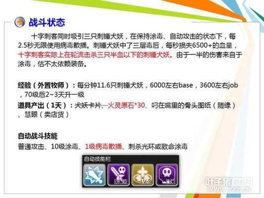 以上就是仙境传说RO手游贫民刺客向攻略 毒散刺锤犬妖刷卡练级攻略了。 更多仙境传说RO手游守护永恒的爱的攻略、资讯、礼包等内容,敬请关注17173仙境传说RO手游专区。 欢迎加入玩家群:84245858 [编辑:叶子猪小秘书]