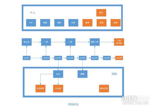 这个游戏其实有个深坑,那就是精炼附魔。这两个东西贫民千万不要碰,从端游时代就几率低得吓人。看了之前王思聪壕掷10W甚至都没有上+10,更不要说还有+15的存在,更不用说附魔更加地坑,材料更多更贵还有那种无法用钱买的存在。而且精炼起码还有个固定几率这个根本就没有保障,那么多隐藏属性,比如你想要一个名弓4,你可能把耐性4专注4斗志4魔力4尖锐4坚韧4都刷出来了也出不来名弓。所以其实这个回收制度可以说是很猛的。但这个也有很大的局限,土豪毕竟是少数,那那些不充钱不看装备就安心咸鱼的人呢?可能土豪的支出还是无法cover整个服务器资金池的水涨船高。那这个时候提升蓝耗,让大家多买药;提高技能CD降低效率让大家多买料理。多出一些需要支出的技能,比如说十字驱魔,所以我非常不懂心动为什么把光耀之堂的蓝宝石和猎人陷阱的工具去掉了,这么便民,完全想不通啊。 3. 玩法日渐单一,纵向扩展远远大于横向扩展,留不住玩家。几次更新搔不到痒处。 前面说了,为什么还不开放新的等级和内容。我觉得心动不是不想,而是实在没办法,做不过来啊。本来我觉得这个游戏就是有点赶鸭子上架的意味了,很多东西还没完全做好,bug也没完全测试完毕,就上线了,因为已经跳票太多次了,还不上估计玩家流失也差不多了。 结果是显而易见的,bug很多,每出一个恶性bug都能赶走一部分人,但这都不算什么。我觉得最严重的就是,现在的ro手游,几乎只有纵向发展,横向发展太少了。 这是现在已经开了的玩法,橙色的是以前端游有现在还没开的。一眼就能看出来,和现在的大部分手游比起来,RO可玩的真的少得可怜。