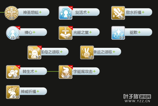 和法师组队练级圣母之颂歌5就好了,禅心10、光耀之堂10、复活术3、其他的看着来,和刺客和猎人练级需要幸运之颂歌和神威祈福,加多少就看你job多少了,以不断蓝永动机为前提加点,装备选择增加SP恢复速度和SP上限的。缺点是自己做打材料的任务比较慢,需要组队。练级地图看其他职业打什么快你跟着去就好了,唱唱歌加加血。服事技能里的钝器熟练度如果用不上了就洗成10级霸邪之阵,其他不变。 2.驱魔牧师 属性点要改成综合Dex到60或90,其他Int,综合的意思就是加上天使之赐福状态和装备属性以及附魔属性,技能先点出圣母之颂歌5、禅心7、光耀之堂3,驱魔牧师就是可以用加血技能攻击不死种族怪物,有单人挂机和任务的能力。选择这条线路的牧师就直接去幽灵船挂骷髅,光耀之堂3-4级就够了,多了回蓝速度跟不上(要做到挂机不吃蓝瓶不断蓝),装备选择增加SP恢复速度和SP上限的。