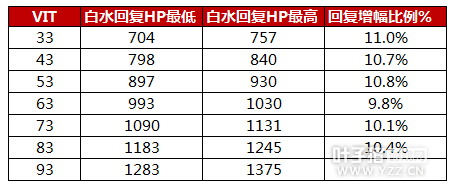 平均每1点VIT带来大约1%的药水回复提升 最后VIT的提升带来血量的增加,经过测试,发现以下3个规律: 1.不同的职业在不同等级的时候,1点VIT所增加的量都会有差异, 2.相同职业在不同等级的时候,1点VIT所增加的量会有差异 3.不同职业在相同等级的时候,1点VIT所增加的血量会有差异 根据以前RO的血量增加公式,1点VIT带来的是1%的基础血量的增加,即基础总血量=基础血量*(1+V/100),从下图也可以看出,HP增量稳定在69-70之间(因为小数向下去整的缘故)
