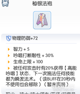 升级前:秘银之衣 智力+2 吟唱打断耐性+20% 升级过程 I 青绿宝石*8,沙金*40,雪勒结晶*150, II 青绿宝石*8,水银*40,死人遗骨*40,铝*5 III 青绿宝石*8,铠甲碎片*50,光粒*2,慧眼*388 END 青绿宝石*8,铠甲碎片*50,诅咒红宝石*2,赛依伐*396 升级之后:秘银法袍 Int+3 吟唱打断耐性+30% 被任何攻击时有20%获得【高能吟唱】状态,下一次施法任何技能都为瞬发法术。 谎言纪录本→生命魔法书