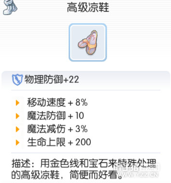 升级前:抗魔靴 移动速度+5% 魔法防御+10 升级过程 I 沙金*40,雪勒结晶*286,中和剂*2, II 死人遗骨*50,水银*50,玻璃珠*358,神之金属原石*15 III 珍珠*2,铠甲碎片*50,冰雕玫瑰*8,神之手*342 END 缎带*2,铠甲碎片*50,泯灭之心*352,慧眼*332 升级之后:高级凉鞋 移动速度+8% 魔法防御+10 魔法减伤+3% 守护天使圣像→大天使圣像