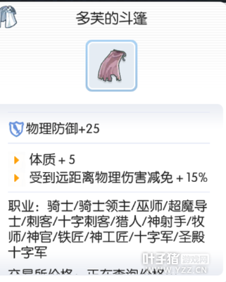 升级前:哥夫内肩饰 体质+2 受到远距离物理伤害减免+10% 升级过程 I 黄宝石*30,水银*60,雪勒结晶*317,巨大蝴蝶翅膀*45 II 黄宝石*30,死人遗骨*80,恶魔角*422,红色飘带*15 III 断柄之刃*25,铠甲碎片*70,透明之布*2,布里刊*502 END 断柄之刃*30,铠甲碎片*70,缎带*3,深渊花*645 升级之后:多芙的斗篷 Vit+5 受到远距离物理伤害-15% 坚定斗篷→坚定魔法斗篷