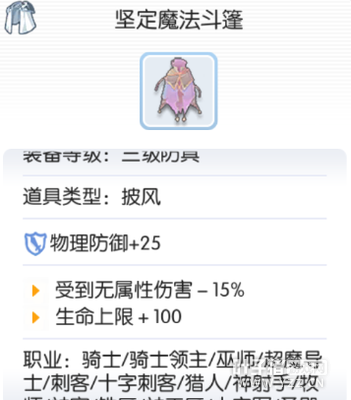 升级前:坚定斗篷 受到无属性伤害-10% 升级过程 I 黄宝石*30,水银*60,雪勒结晶*330,巨大苍蝇翅膀*166 II 黄宝石*30,死人遗骨*80,恶魔角*452,雷蒙盖顿的眼泪*15 III 断柄之刃*25,铠甲碎片*70,星星的角*2,慧眼*512 END 断柄之刃*30,铠甲碎片*70,黑云母*3,赛依伐*584 升级之后:坚定魔法斗篷 受到无属性伤害-15% 更多仙境传说RO手游守护永恒的爱的攻略、资讯、礼包等内容,敬请关注17173仙境传说RO手游专区。 欢迎加入玩家群:84245858 [编辑:叶子猪小秘书]