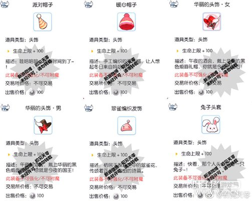 特典头不可交易,属性全部是生命上限+100。存入属性分为两种:1月和3月是ATK+5,MATK+5。其他月份是MAXHP+50 1-6月对应特点的庆典头饰。