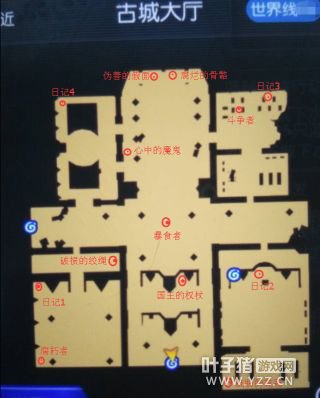 东西直接按照图上所示拾取即可,值得注意的是本次拾取有先后顺序,拾取日记1234后才能激活拾取骨骼、花冠、绞绳、权杖; 拾取暴食者、腐朽者、斗争者后才能解锁假面和心中魔鬼的拾取;